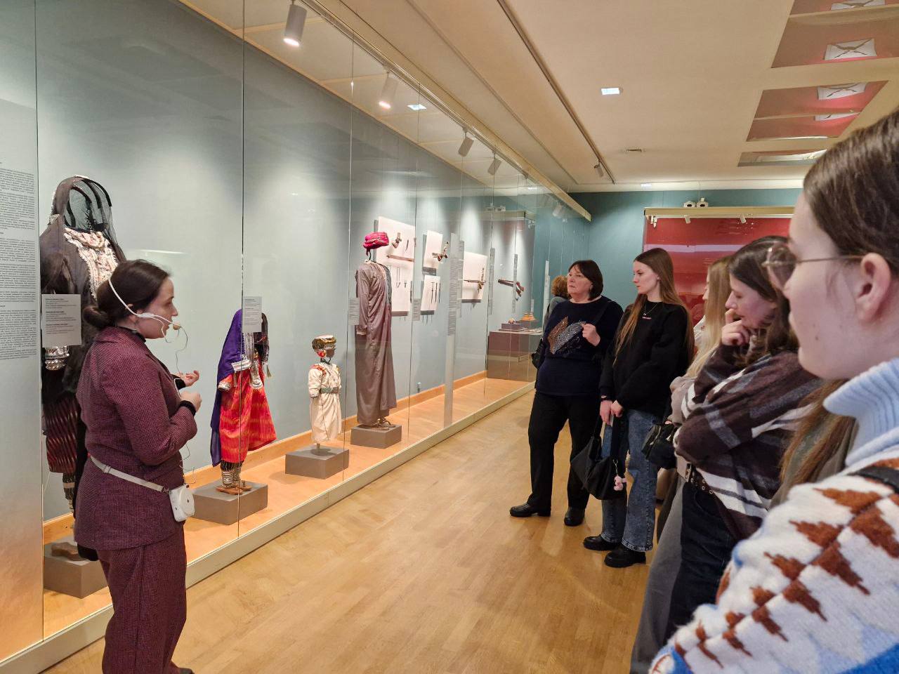 Основной целью визита стало знакомство с уникальной выставкой «Элегантность серебра: сокровища Оманского двора». В ходе экскурсии студенты ознакомились с коллекцией предметов из Национального музея Султаната Оман, узнали об историческом значении и художественных традициях оманского серебряного дела, а также погрузились в культурный контекст представленных артефактов.